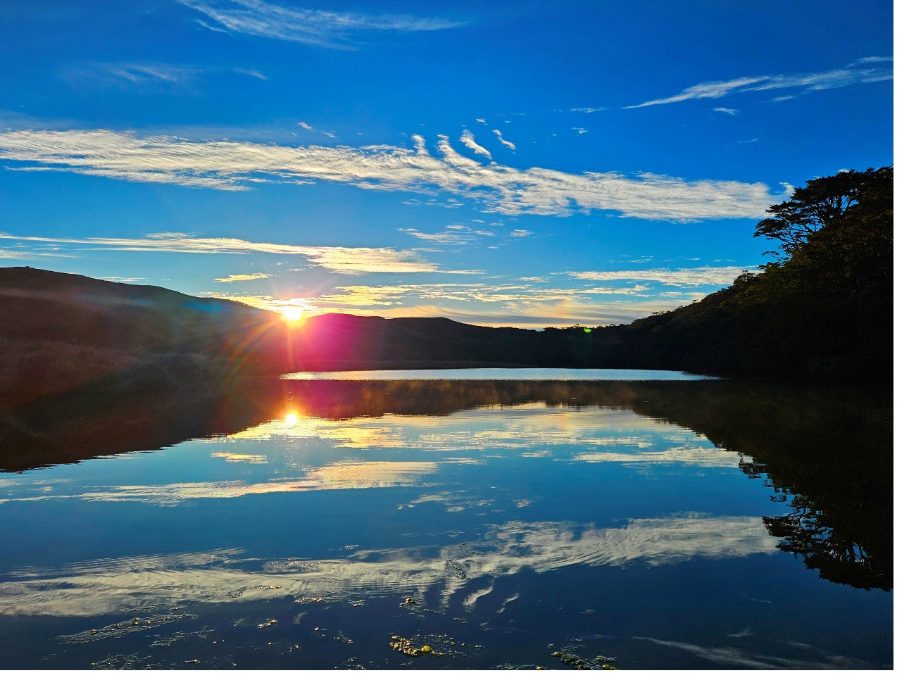 選擇配圖時,我知道我想選和水有關的照片,本來的構想是人塔渡溪的協力照,看見小鬼湖的日出,卻發現就是它了。